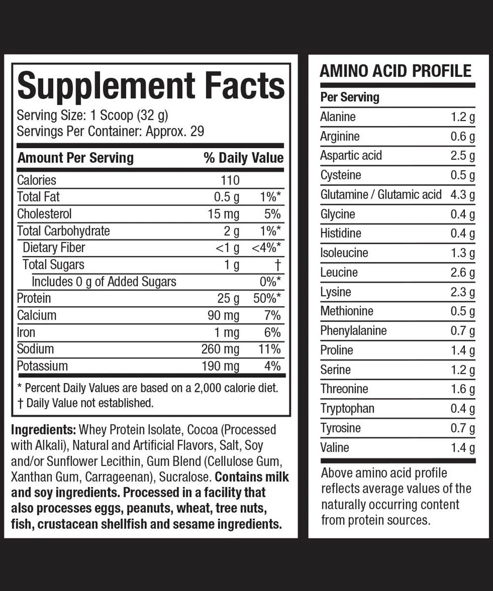 Sa formulation vise à réduire la teneur en graisses, en cholestérol et en lactose, tout en maximisant l’apport protéique. Elle fournit également plus de 11 g d’acides aminés essentiels (EAAs) et 5 g d’acides aminés à chaîne ramifiée (BCAAs), naturellement présents dans l’isolat de whey, pour soutenir la construction musculaire et la récupération.