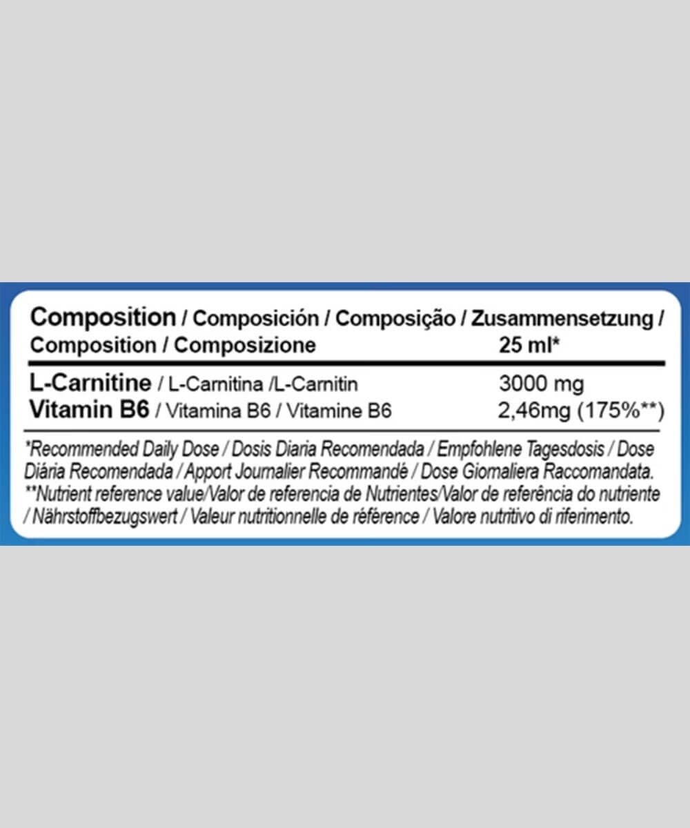 - 3000 mg de L-Carnitine par dose de 25 ml